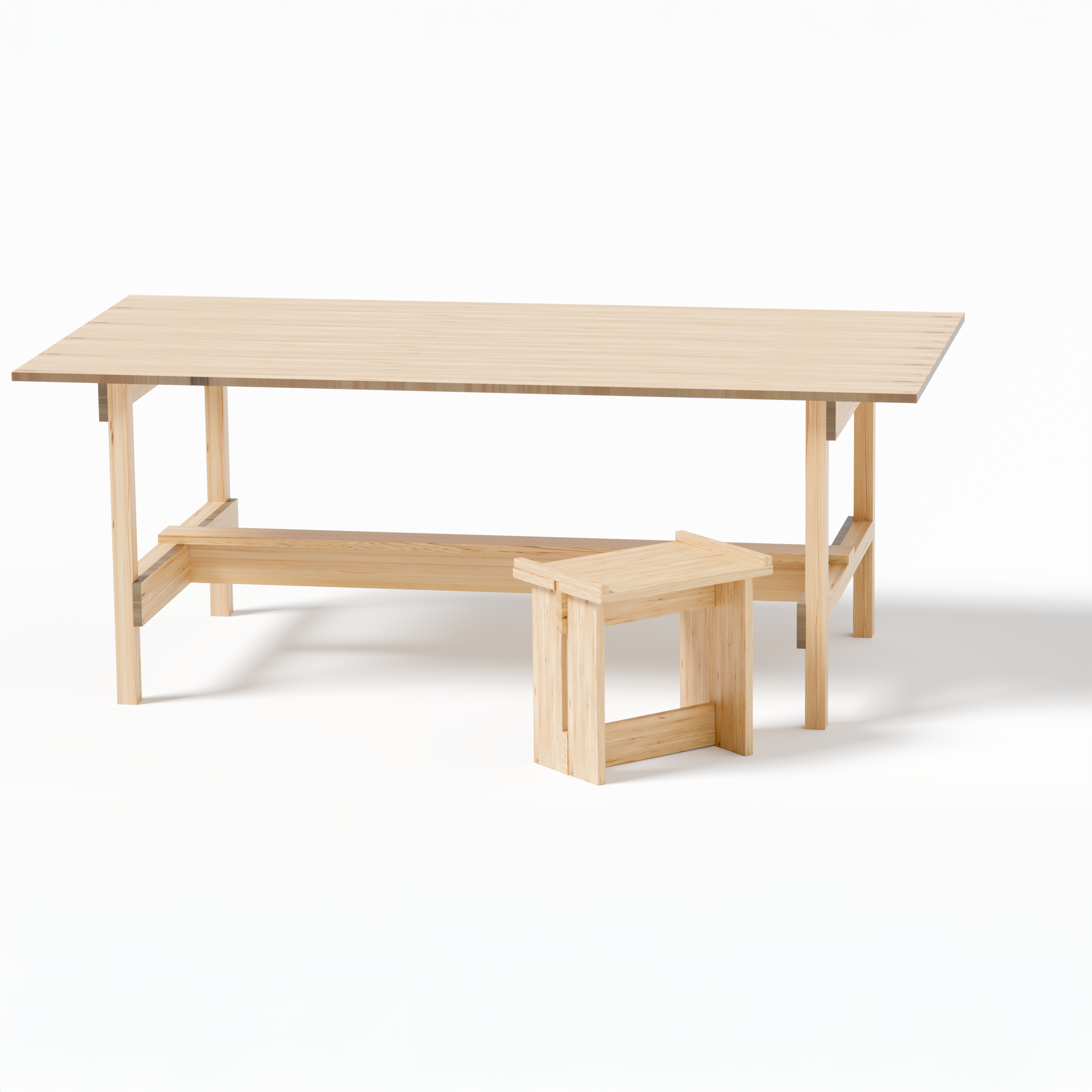 O banco é todo cavilhado, sem parafusos ou similares e se trava de forma inteligente.