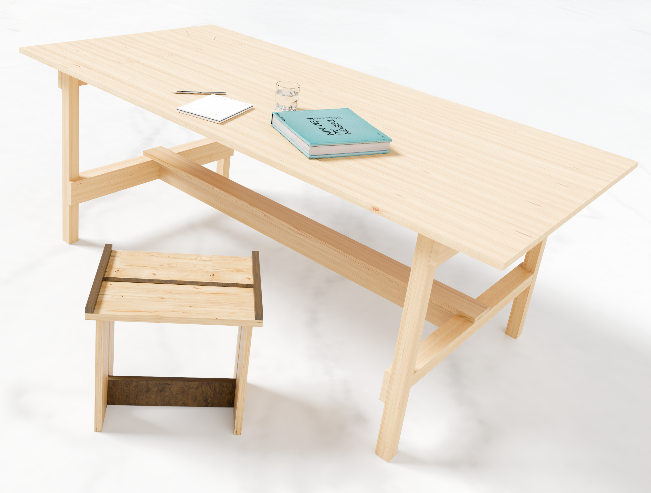 Versão diminuta do Banco Piccini, um modelo que ficará feliz com opções de personalização, misturas de tipos de madeira, vernizes, cores, texturas.