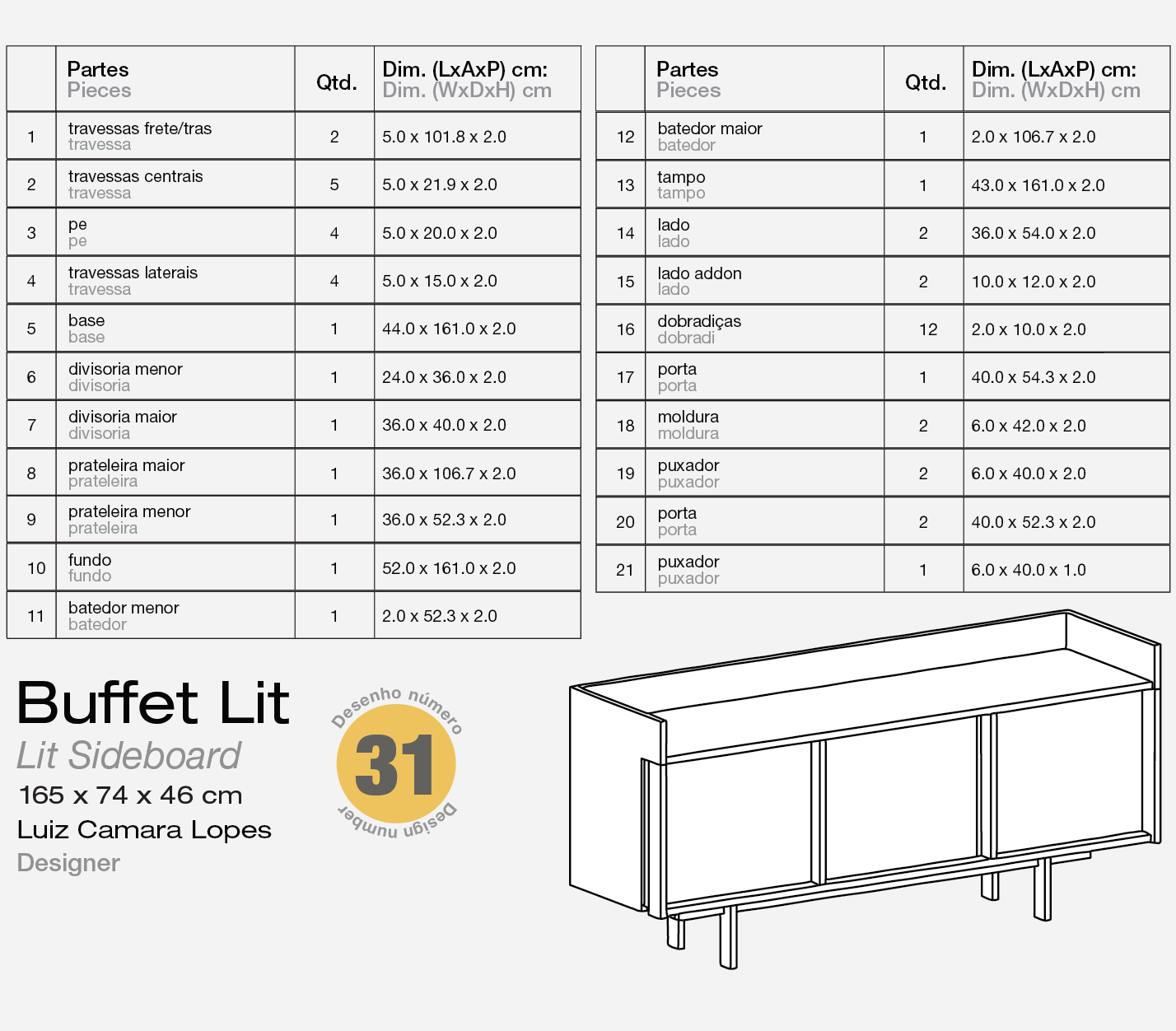 Buffet Lit 165 cm